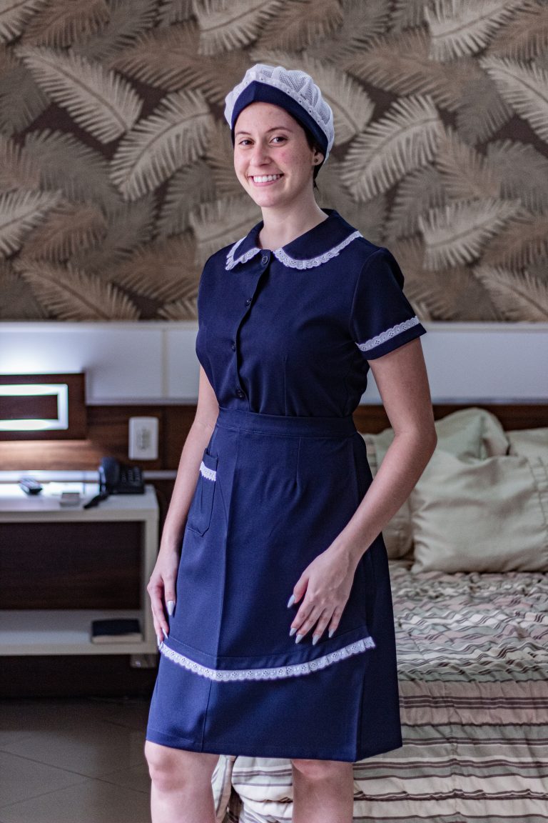 Nossa linha inclui vestidos, calças, camisas e aventais, desenvolvidos para copeiras, camareiras, seguranças, zeladoras, recepcionistas e equipes administrativas que atendem hotéis, pousadas e uma variedade de estabelecimentos comerciais, como spas, clubes e centros de eventos. Cada peça é confeccionada com foco em conforto, durabilidade e um visual profissional, garantindo que seu ambiente se destaque.
